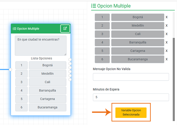 - Configura las opciones de respuesta (Ejemplo: 1-Bogotá, 2-Medellín, 3-Cali......)