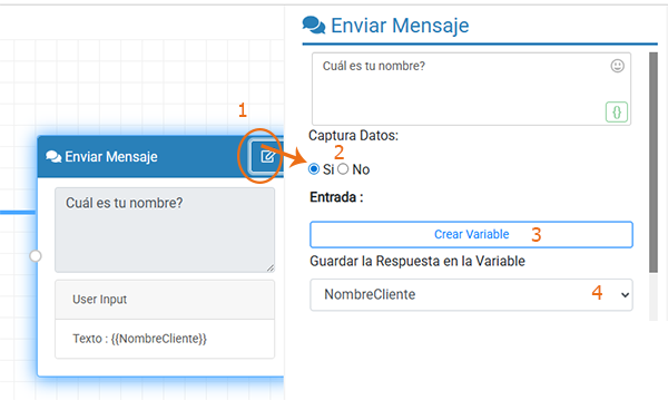 En el campo del mensaje, redacta la pregunta que el bot enviará al usuario. |