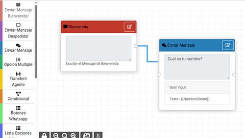 Cuando deseas hacer una pregunta abierta, por ejemplo: ¿Cuál es tu nombre?, ¿Cuál es tu correo electrónico? utilizas el widget ENVIAR MENSAJE