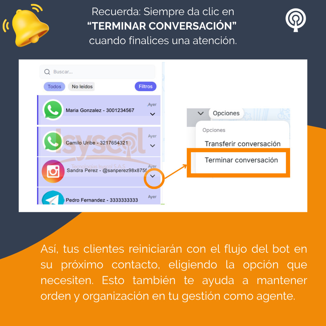 Opciones para transferir o asignar conversaciones del chatbot a los agentes