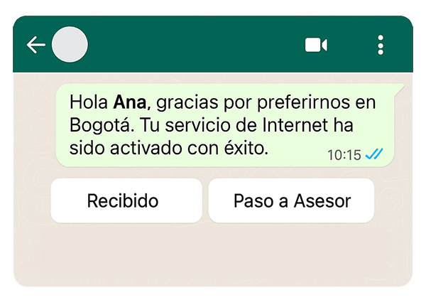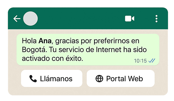 Puede incluir hasta 3 botones de respuesta rápida, cada uno con un máximo de 25 caracteres.
