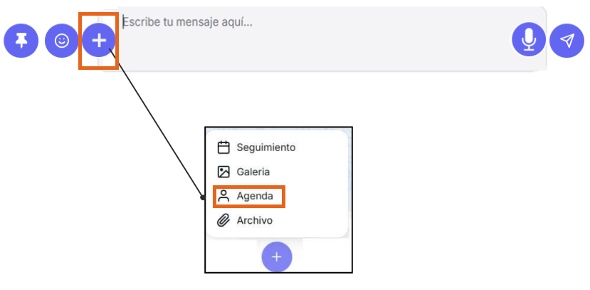 Cuando los agentes están atendiendo una conversación, pueden agregar ese contacto desde la siguiente opción: |