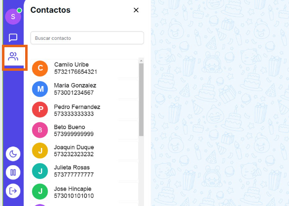 Los agentes, podrán ver la lista de contactos guardados creados por todos los agentes y no solo los suyos, ingresando al ícono en el menu lateral izquierdo: |